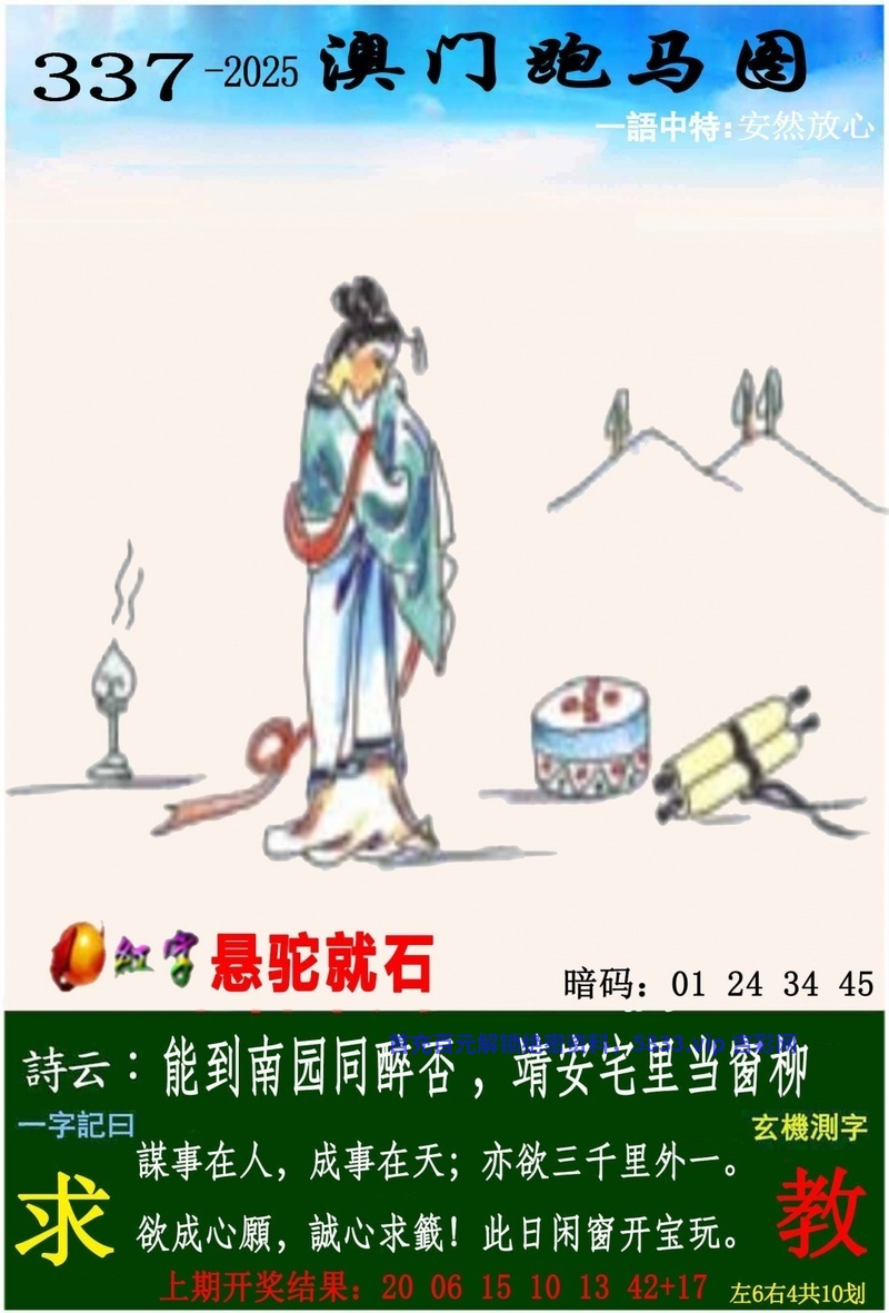 341期:解彩民救星【千裏相尋結于此,宰相之位貴不言】 解:千裏相尋結于此,宰相之位貴不言。解马兔龙羊蛇猴 七肖:马兔龙羊蛇猴虎 八码:24.36.15.26.23.49.10.04 大小数:大数 |