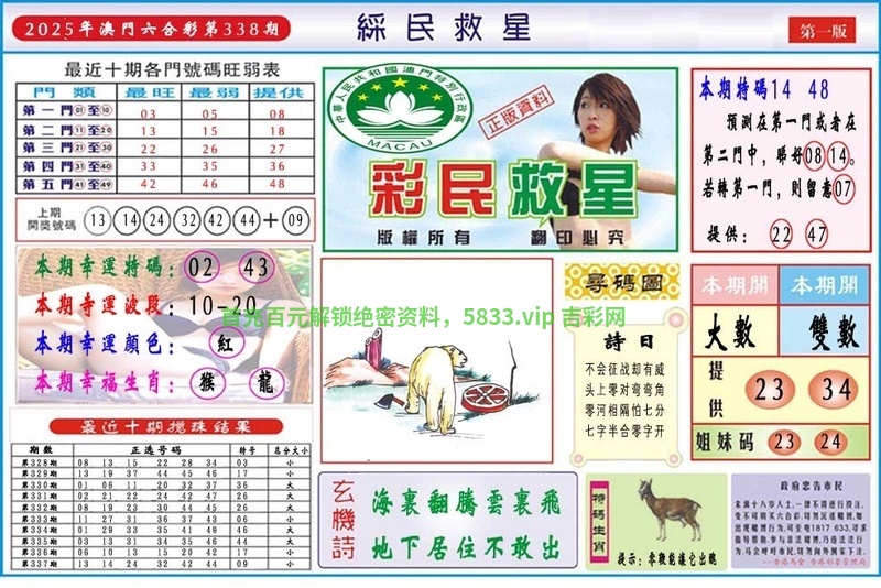 | 338期:平特一尾【5555尾】开:兔15准 |